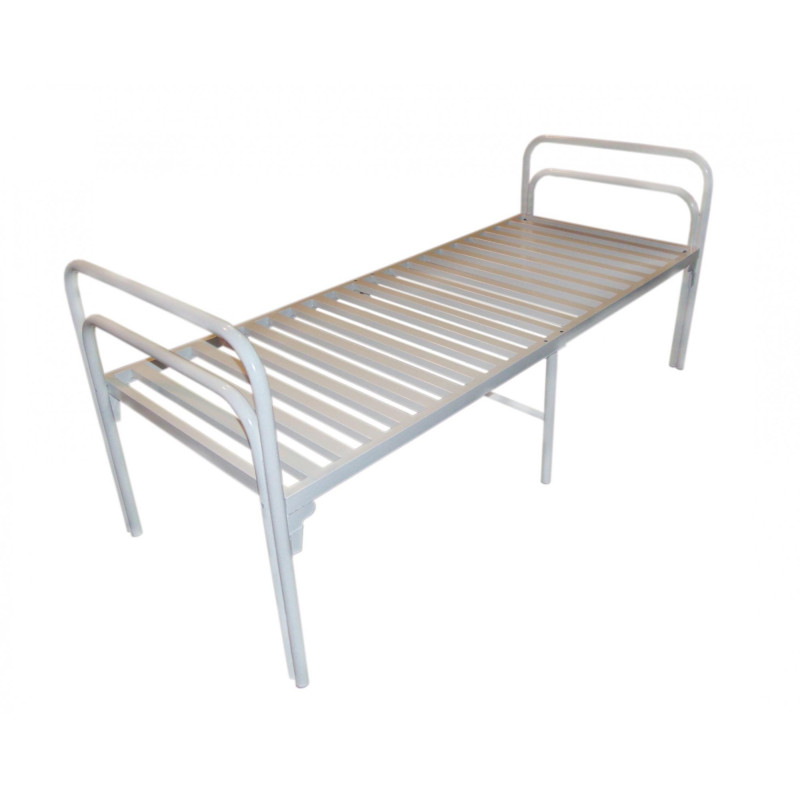 Кровать медицинская общебольничная для учреждений здравоохранения с дополнительной опорой по центру. Цвет белый, основание - металлическая рейка.