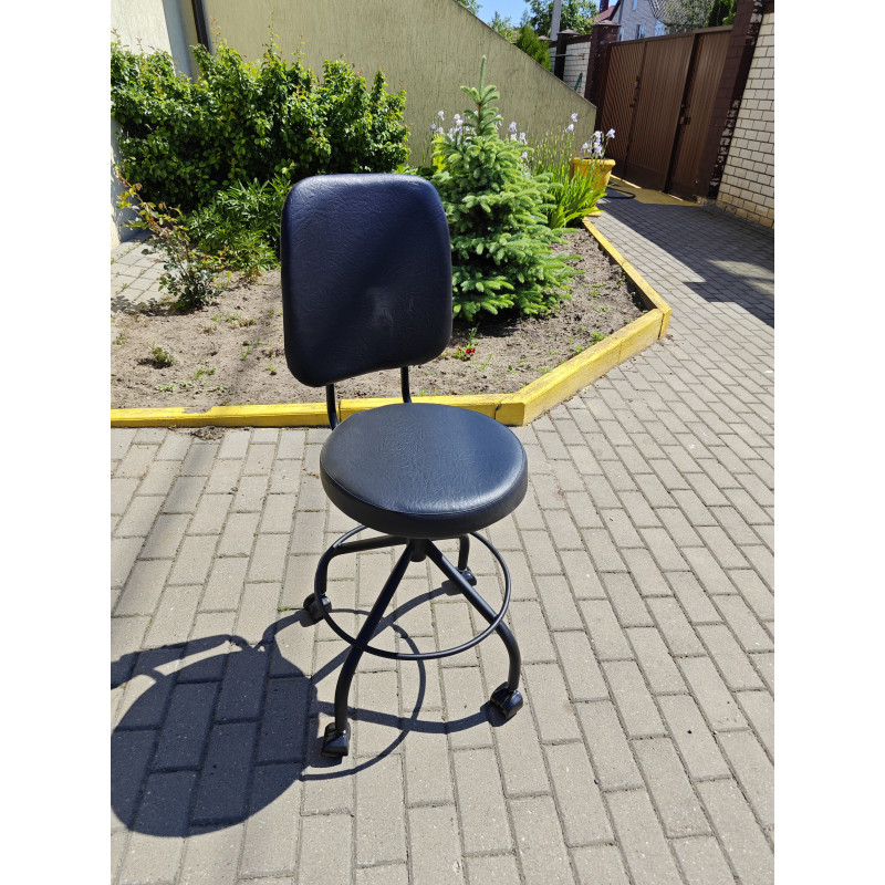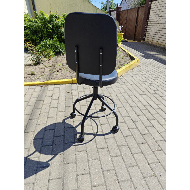 Высота подъёма от пола до сидения 440-560мм. Сидушка мягкая шитая - поролон 40мм. Спинка трапециевидная. Цвет полимерного покрытия металла - по выбору Заказчика. Цвет кожзаменителя или ткани - по выбору Заказчика. Без колёс. Усиленные колёса с болтовым соединением. Механизм свободного вращения верхней части стула (2 подшипника+фиксатор, что увеличивает срок службы внутренней резьбы и винта до 5- ти лет и более. Предотвращает износ резьбовой группы). Цена без НДС.