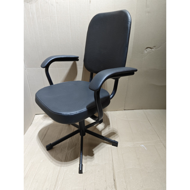 Высота подъёма от пола до сидения 440-560 мм. Сидушка мягкая шитая - поролон 40 мм.. Ножка пятилучье ФОСП. Сварные усиленные подлокотники с полумягкими накладками. Цвет-полимерного покрытия металла - чёрный глянец, цвет обивки кожзам/ткань - по выбору. Механизм свободного вращения верхней части стула (Вращение верхней части стула происходит без задействования винтовой группы). 2 Подшипника+фиксатор (увеличение срока службы внутренней резьбы и винта до 5- ти лет и более. Предотвращает износ резьб.) Гарантийный срок эксплуатации - 18 месяцев.