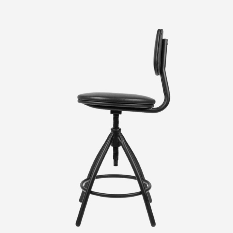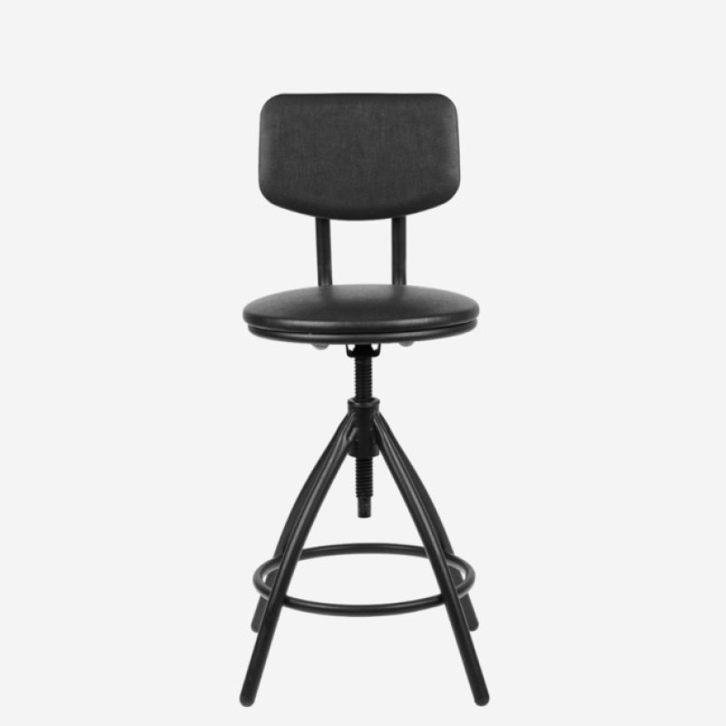 Стул винтовой на металлической каркасе с пластиковыми заглушками и регулировкой по высоте. Ножка усиленная с кольцом для ног. Кольцо усиления по сидением. Габариты (ШхГхВ) изделия: 400х490х890-1010 мм., Сиденье :Ø 380 мм., Спинка эргономическая (ШхВ): 340х320 мм., Высота регулировки от пола до сиденья: 570-690 мм. Винт - стальной стержень Ø29 мм с резьбой и гайкой из стеклонаполненого полиамида, резьба прямоугольная с шагом 6 мм, высота резьбы-2мм, что дает большую степень сцепления. Диапазон регулировки 190 мм.