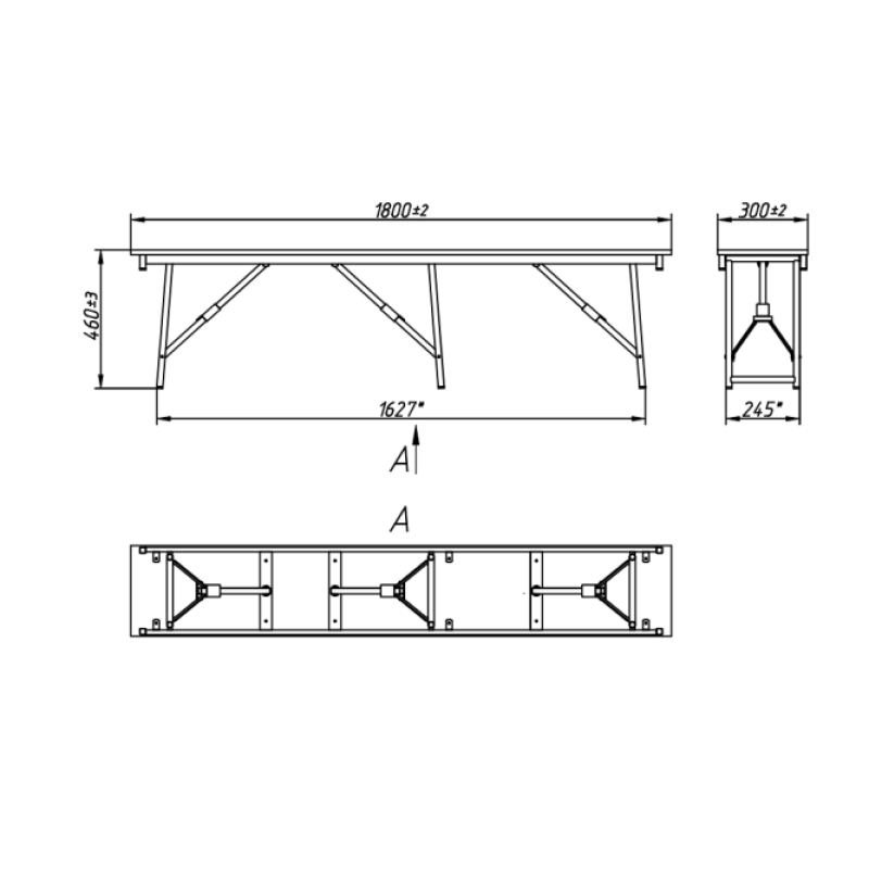 | Тип | Скамья с сидением из ЛДСП и складным каркасом |