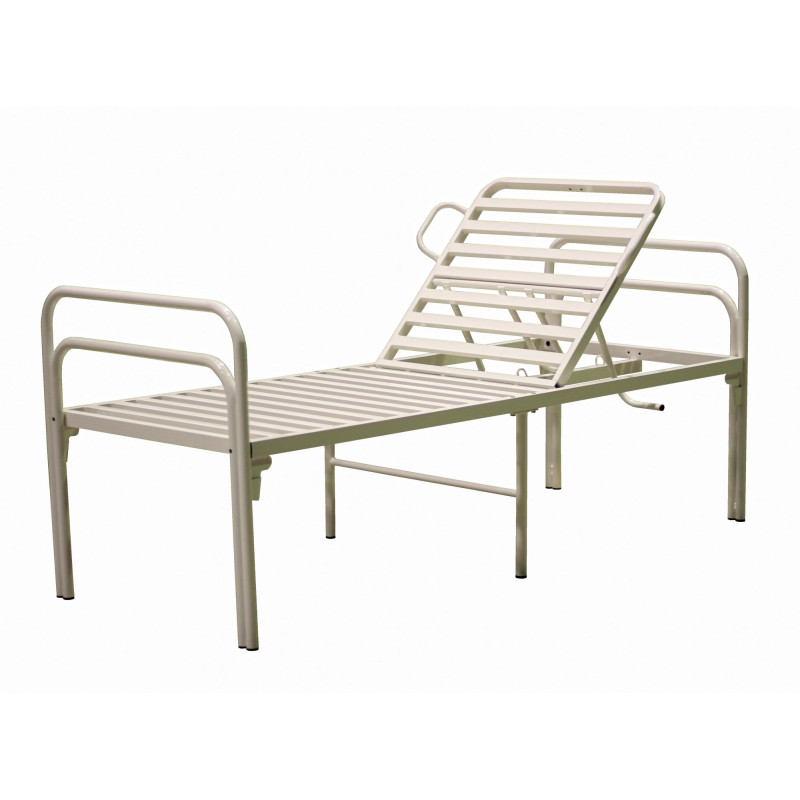 Кровать медицинская общебольничная с подголовником для учреждений здравоохранения с дополнительной опорой по центру. Цвет белый, основание - металлическая рейка.