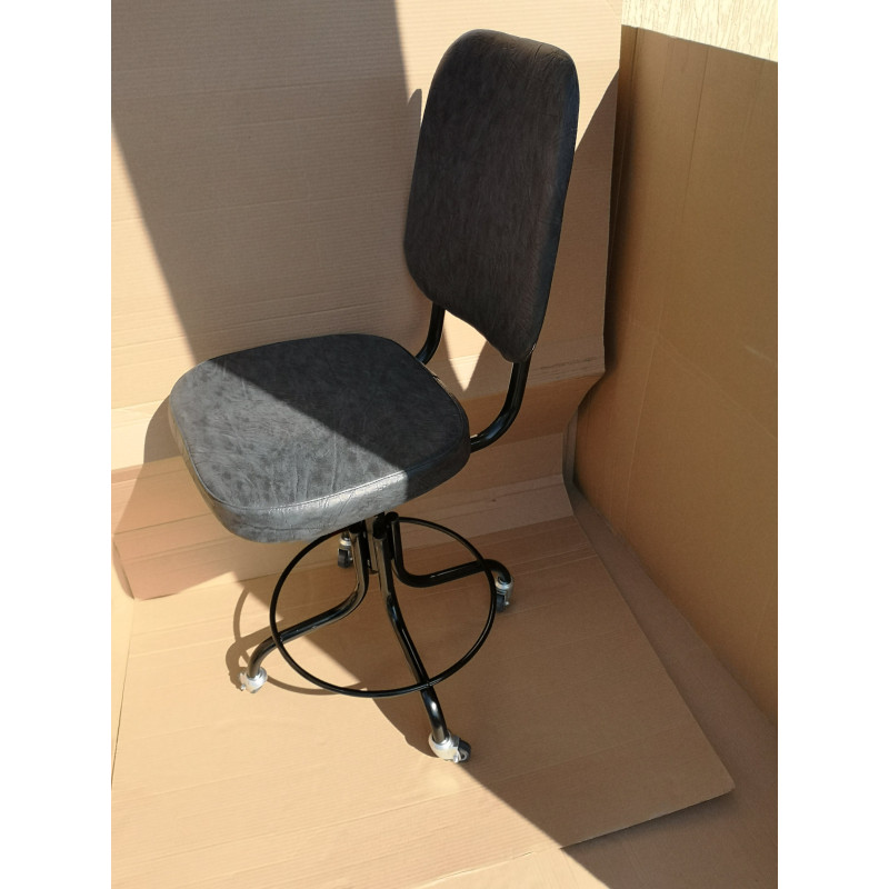 Дизайн кресла выполнен в лаконичном стиле: трапециевидное сиденье и прямоугольная спинка с отделкой из искусственной кожи. Наша компания предлагает выбрать расцветку кожзама и металлического каркаса, что позволит подобрать винтовой стул, который будет идеально подходить к интерьеру мастерской, цеха или торгового зала.