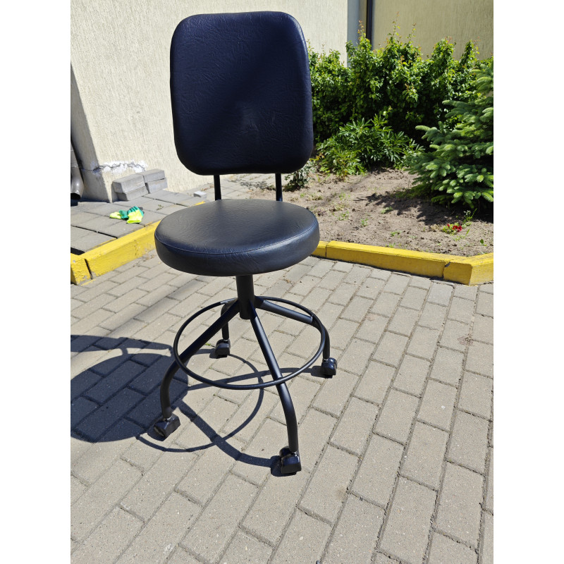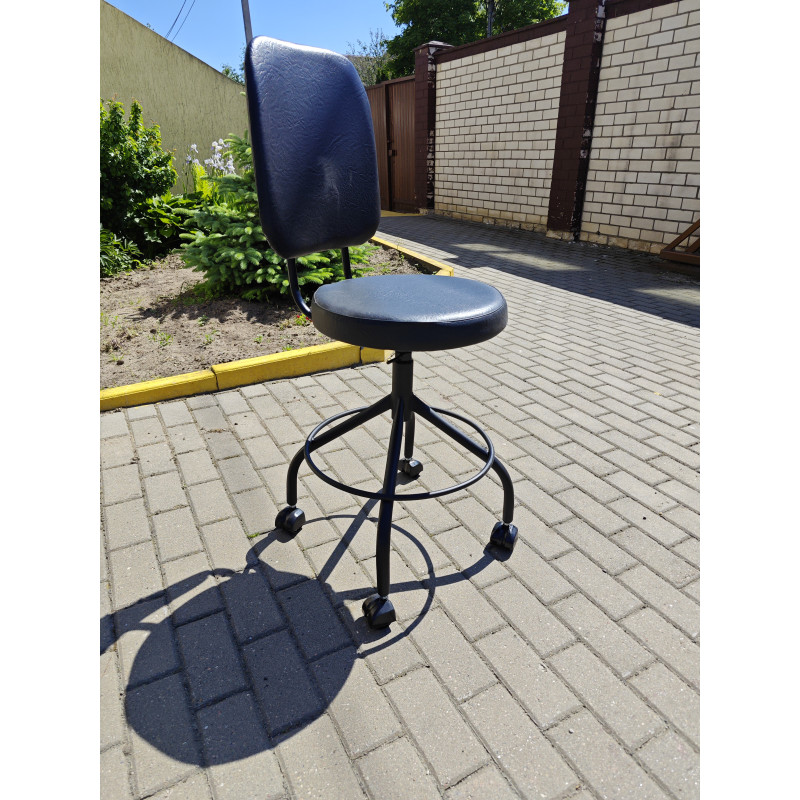 Высота подъёма от пола до сидения 440-560мм. Сидушка мягкая шитая - поролон 40мм. Спинка трапециевидная. Цвет полимерного покрытия металла - по выбору Заказчика. Цвет кожзаменителя или ткани - по выбору Заказчика. Без колёс. Усиленные колёса с болтовым соединением. Механизм свободного вращения верхней части стула (2 подшипника+фиксатор, что увеличивает срок службы внутренней резьбы и винта до 5- ти лет и более. Предотвращает износ резьбовой группы). Цена без НДС.