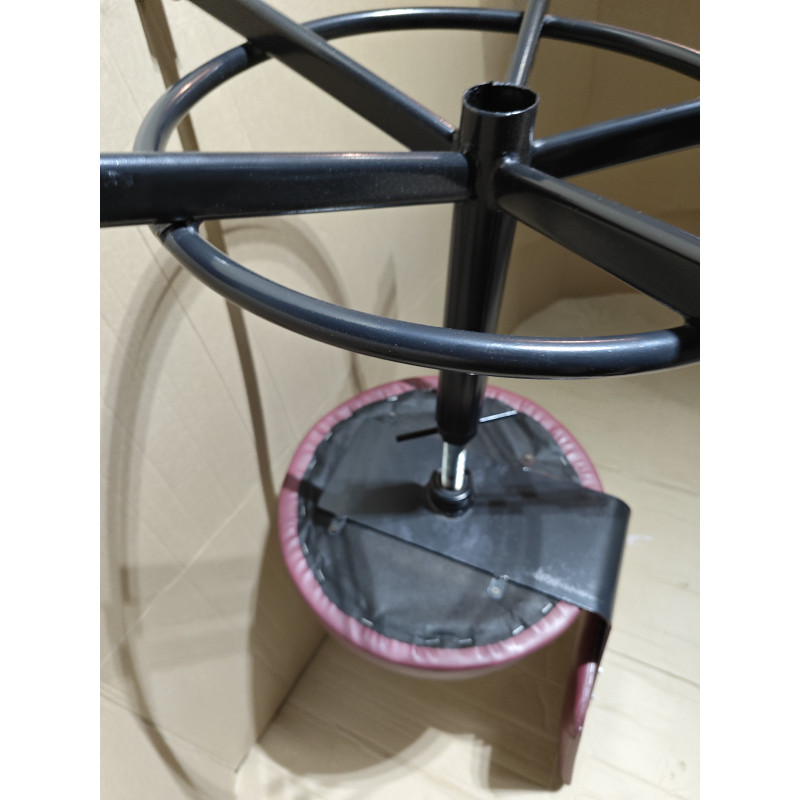 Высота подъёма от пола до сидения 440-560 мм. Сидение круглое шитое диаметром 395 мм., поролон 40 мм. Спинка мягкая . Кольцо для ног. Цвет-полимерного покрытия металла - чёрный, Цвет ОГНЕУПОРНОГО КОЖ. ЗАМЕНИТЕЛЯ - рыжий, бордо, чёрный, зелёный. Механизм свободного вращения верхней части стула (Вращение верхней части стула происходит без задействования винтовой группы). 2 Подшипника+фиксатор (увеличение срока службы внутренней резьбы и винта до 5- ти лет и более. Предотвращает износ резьб.) Гарантийный срок эксплуатации - 18 месяцев.